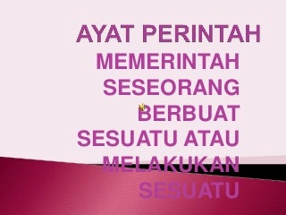 _ ayat perintah ayat perintah ialah ayat yang menyuruh, melarang, mempersilakan, atau meminta seseorang melakukan sesuatu.