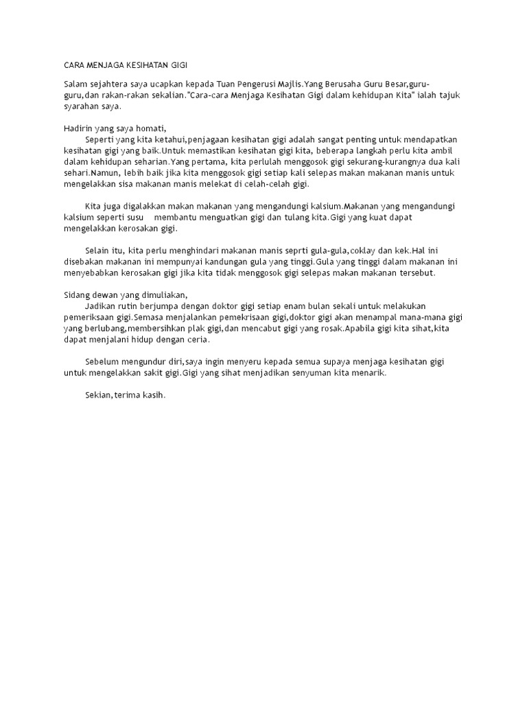 Kesihatan Diri from image.slidesharecdn.com Jangan ingat anda hanya perlu menjaga kesihatan gigi bayi hanya selepas mereka tumbuh gigi. Ramai yang menganggap cara berus gigi sekadar berus dan kumur mulut. Pembersihan gigi susu bayi harus dimulakan sebaik sahaja gigi susu tumbuh walaupun anak anda hanya minum susu ibu atau susu formula sahaja. Jadi nak elakkan benda tu, pastikan cara yang kita gunakan tu. Bila berlaku mudah jer kan. Saya kebetulan kurang memberi perhatian kepada menu makan saya pagi ini, kerana terlalu ketat untuk menggigit makanan yang cukup keras supaya bahagian wayar pancang. Dimana bahan ini cukup mudah untuk anda. Wajib memberus gigi sebelum tidur mengamalkan teknik memberus gigi yang betul gosok gusi dengan lembut untuk menjaga kesihatan gusi hadkan makanan dan minuman.