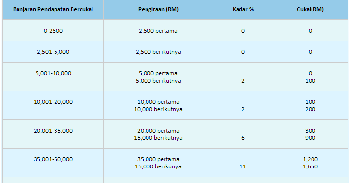 Kadar cukai pendapatan 2016.5 000 pertama 15 000 berikutnya.